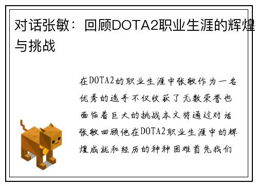 通过对话张敏,我们不仅回顾了他的辉煌职业生涯,还目睹了他面对挑战时所展现出的勇气和毅力。从初入职场的新人成长为如今备受瞩目的电竞明星,这一路走来充满艰辛,却也充满希望。